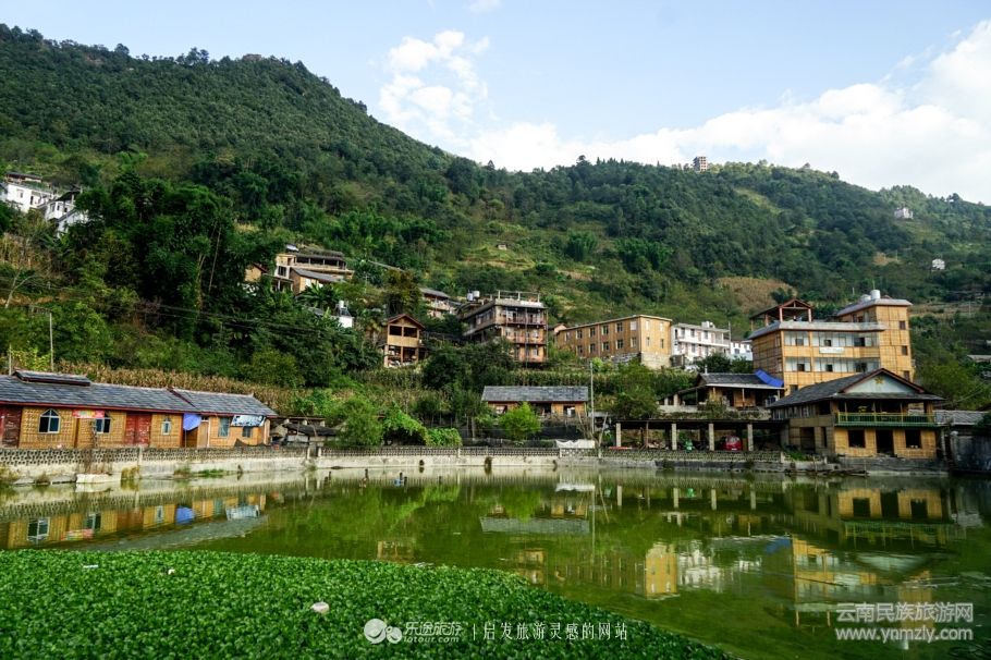 老姆登村的民居背靠山坡,前有走廊、曬臺,房屋建筑平面由糧倉、火房、碓房、臥室、走廊等組成。