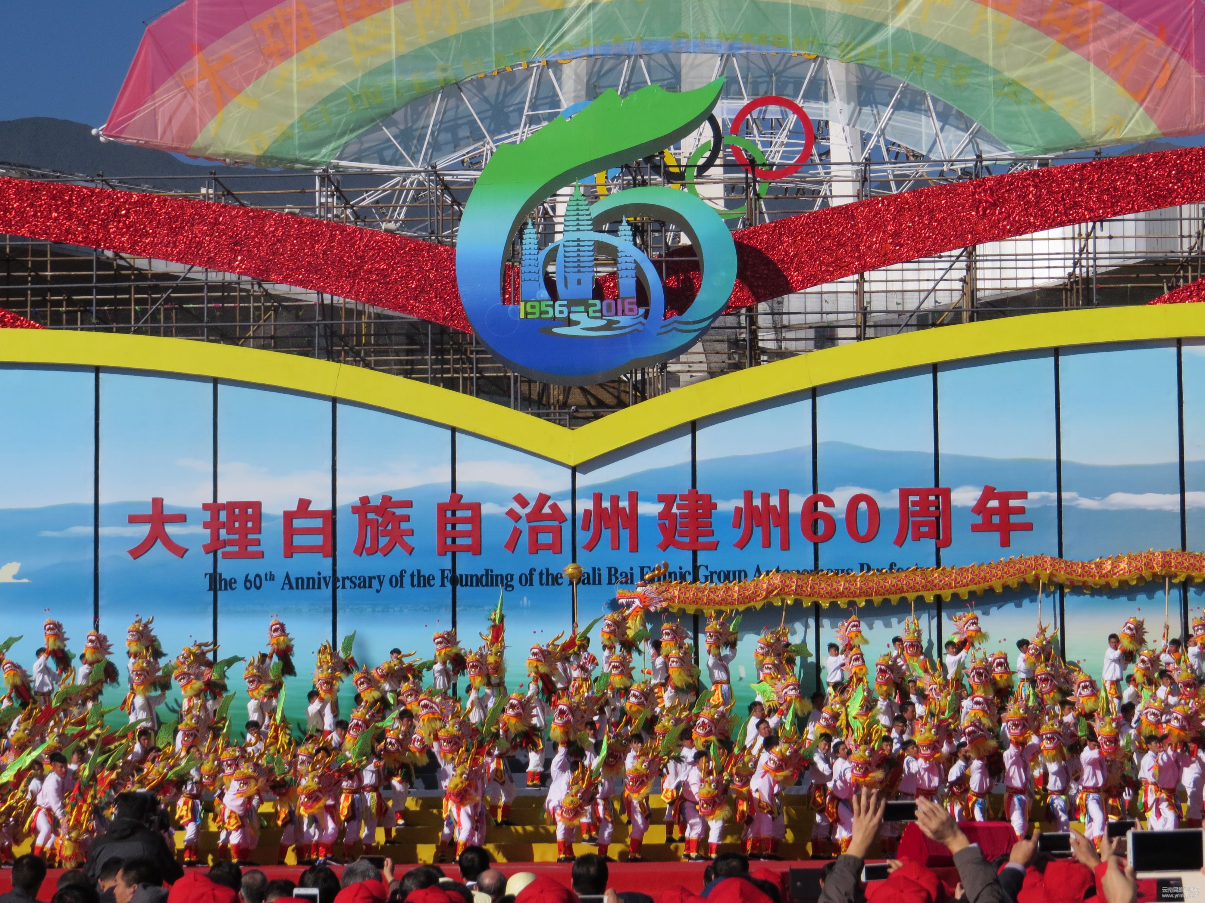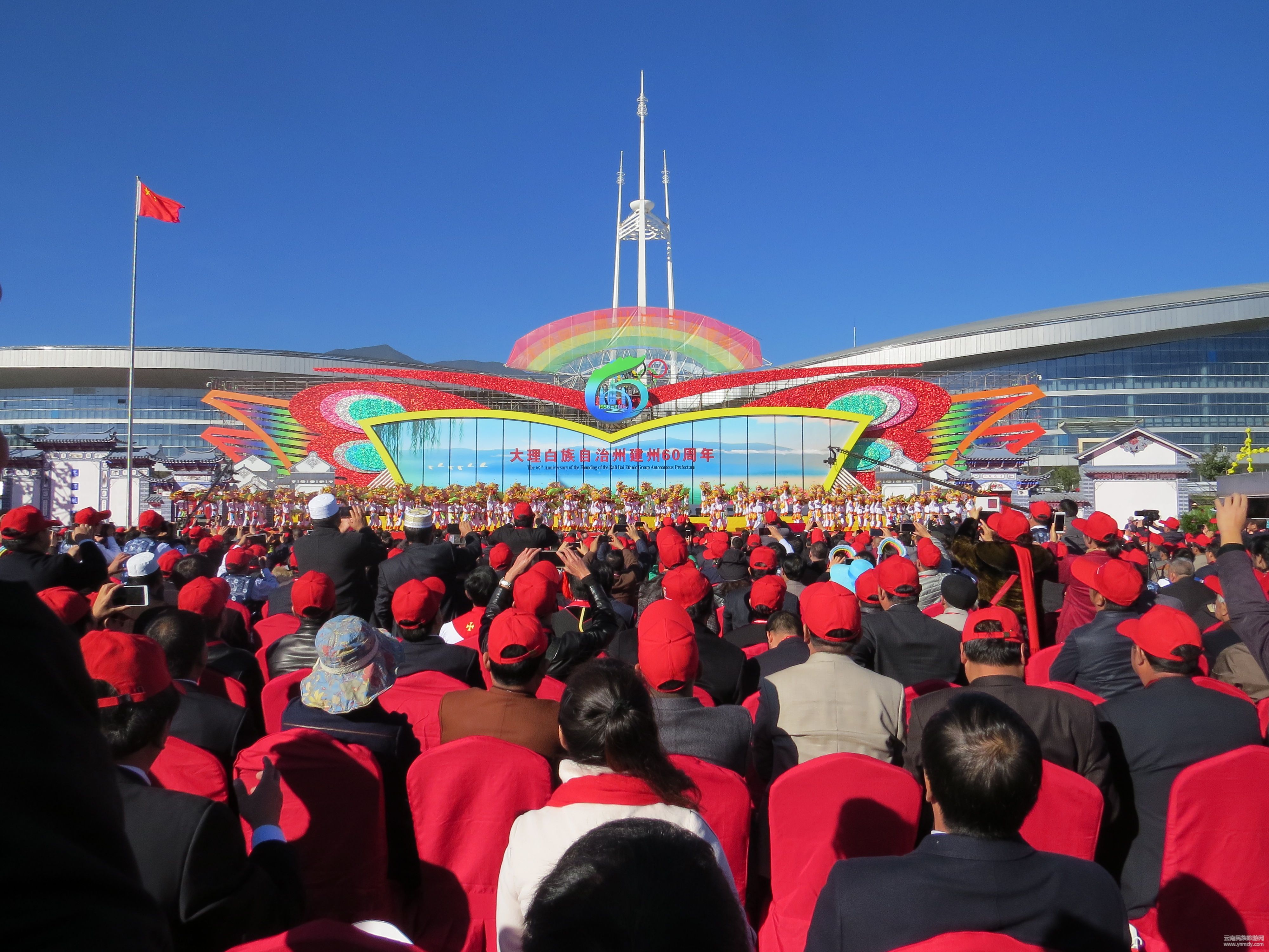 中共大理州委書記楊寧宣布大理白族自治州60周年慶祝大會(huì)開始,鳴禮炮;中共大理州委副書記、州長楊健向大會(huì)介紹自治州60年來翻天覆地的變化;工作人員分別宣讀來自全國人大常委會(huì)、國務(wù)院和云南省委、省人大、省政府、省政協(xié)、省軍區(qū),以及兄弟州市發(fā)來的賀電和賀信;國家民委研究室主任石玉鋼在大會(huì)上宣讀《國家民委關(guān)于命名大理白族自治州為“全國民族團(tuán)結(jié)進(jìn)步創(chuàng)建活動(dòng)示范州”的決定》。