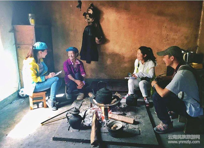 恰逢學(xué)生放假,她剛從獨(dú)龍江鄉(xiāng)把自己的孫女接回家,見到我們的到來,她客氣的找來了杯子,給我們倒茶。大家圍坐在火塘邊,她告訴我們,他的兒子進(jìn)山了,幫驢友們挑行李,就是所謂的“挑夫”,說起文面,她頗有感觸,她18歲紋面,1958年地震的時(shí)候,她跑出來了,因?yàn)楫?dāng)過村里的干部,工作繁忙,所以,直到40歲她才結(jié)婚。兩年前,政府建了房子以后,她到了熊當(dāng)小組,而每年的3月到6月她要到回到以前的居所,距離熊當(dāng)四個(gè)小時(shí)山路的木當(dāng)采集草藥,那里有豐富的草藥資源,那也是他們的主要經(jīng)濟(jì)來源。她說,木當(dāng)還有一位很老的文面女,將近一百多歲了。聽到這,我本想著去拜訪,可山路遙遠(yuǎn),便放棄了。