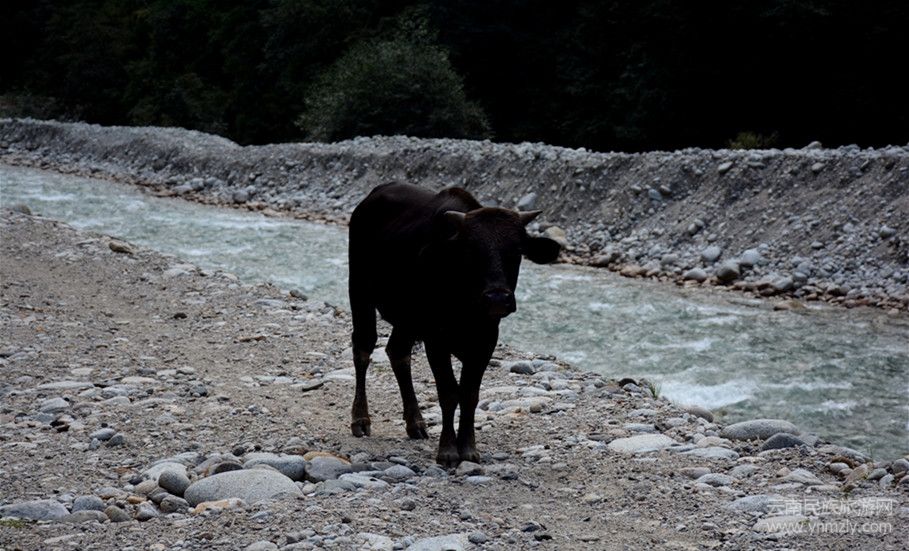 返程的時(shí)候,幸運(yùn)的遇到了獨(dú)龍牛,野生的獨(dú)龍牛具有攻擊性,而這頭是半野生的,所以當(dāng)我們走過它身旁的時(shí)候,它只是呆萌的看著我們。