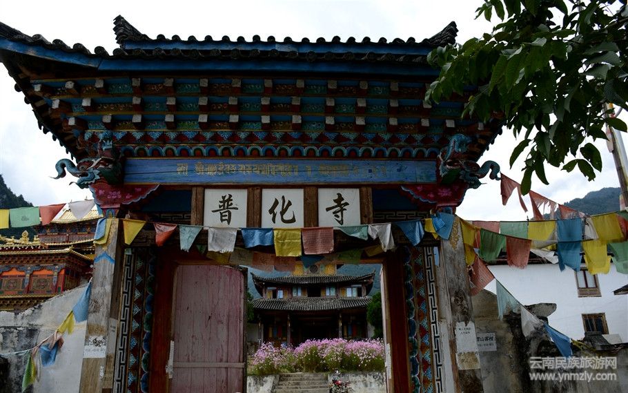 普化寺又叫喇嘛寺,屬藏傳佛教寺院,位于兩虎一獅的中間,占地面積3000多平方米,建筑古樸精美。始建于五百多年前,是唯一一座藏傳佛教噶舉派的寺院。普化寺附近的居民以藏族、怒族、傈僳族、獨(dú)龍族、納西族等少數(shù)民族為主。雖然是不同的民族,但他們都信仰著藏傳佛教并有著堅(jiān)定的信心。