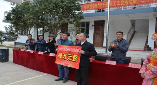 云南省佛教協(xié)會副會長康南山代表省佛教協(xié)會給牛街鄉(xiāng)捐贈價值40000元的體育用品,牛街鄉(xiāng)黨委書記陳繼紅代表該鄉(xiāng)黨委、政府及全鄉(xiāng)各族群眾對省佛教協(xié)會致以誠摯的感謝;牛街鄉(xiāng)黨委副書記、鄉(xiāng)政府鄉(xiāng)長李國瑞代表牛街鄉(xiāng)接受了省佛教協(xié)會的捐贈。