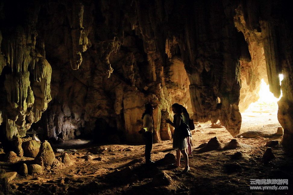 塘猛洞位于景信鄉(xiāng)景冒村景冒上寨路邊的半山腰上,在路邊看不到洞口,因為洞口附近長滿大樹和雜草,必須穿過一片甘蔗地,爬上一段陡坡,才能看到洞口。進了洞,便仿佛進入一個大大的空調(diào)房,洞外還是夏日炎炎,洞內(nèi)卻是清涼無比,讓人身心舒爽。