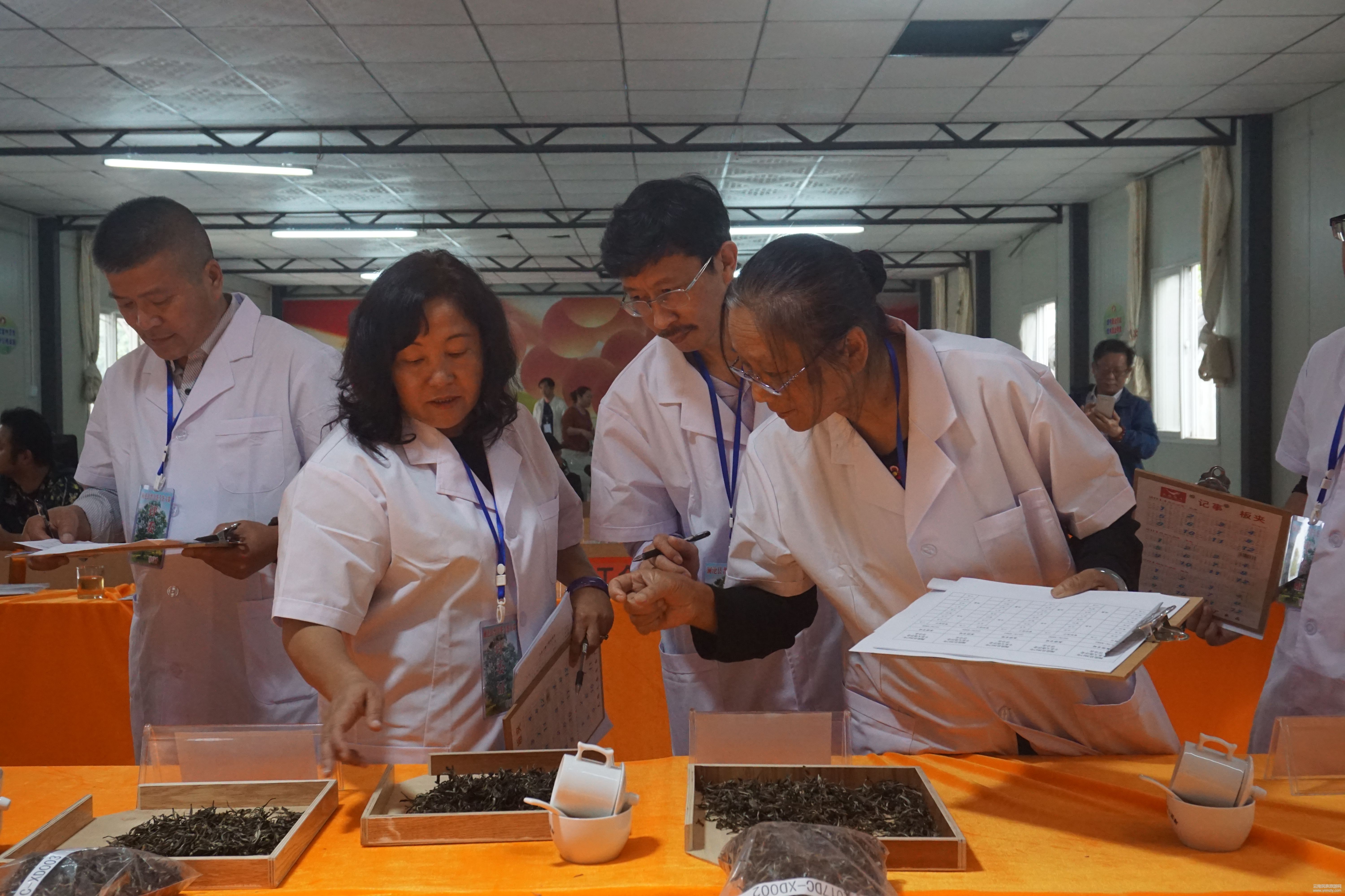 (評審組專家對選送茶樣進行認(rèn)真評審打分)
