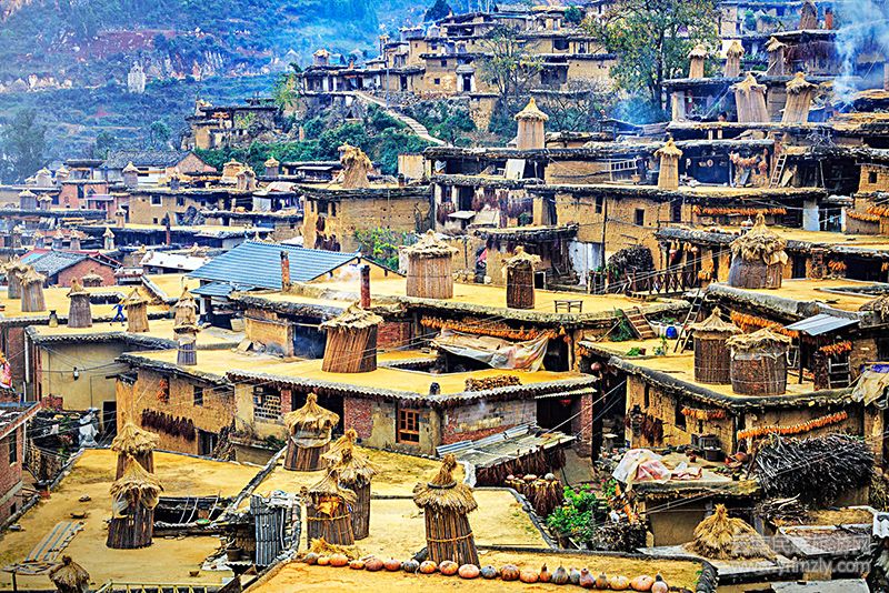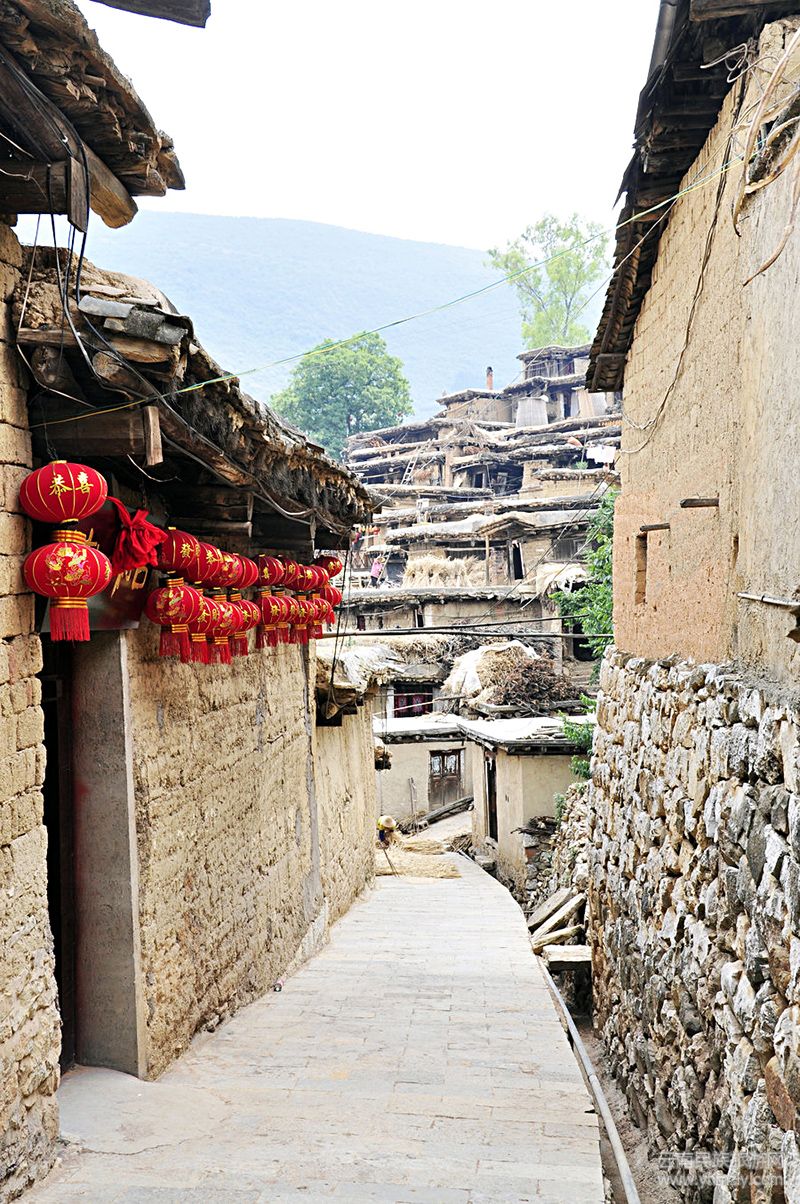 明成化九年(1473年),昂貴站在土司府的門檻前,久久地俯視著山坡下。他的視野里,是依山而建的1000多間土掌房,土掌房上下左右相連,村內(nèi)巷道交錯,整個村子就像一個立體迷宮。古村在選址與建設(shè)上符合中國傳統(tǒng)風(fēng)水學(xué),村寨景觀達(dá)到了人與自然共生共存的完美境界。