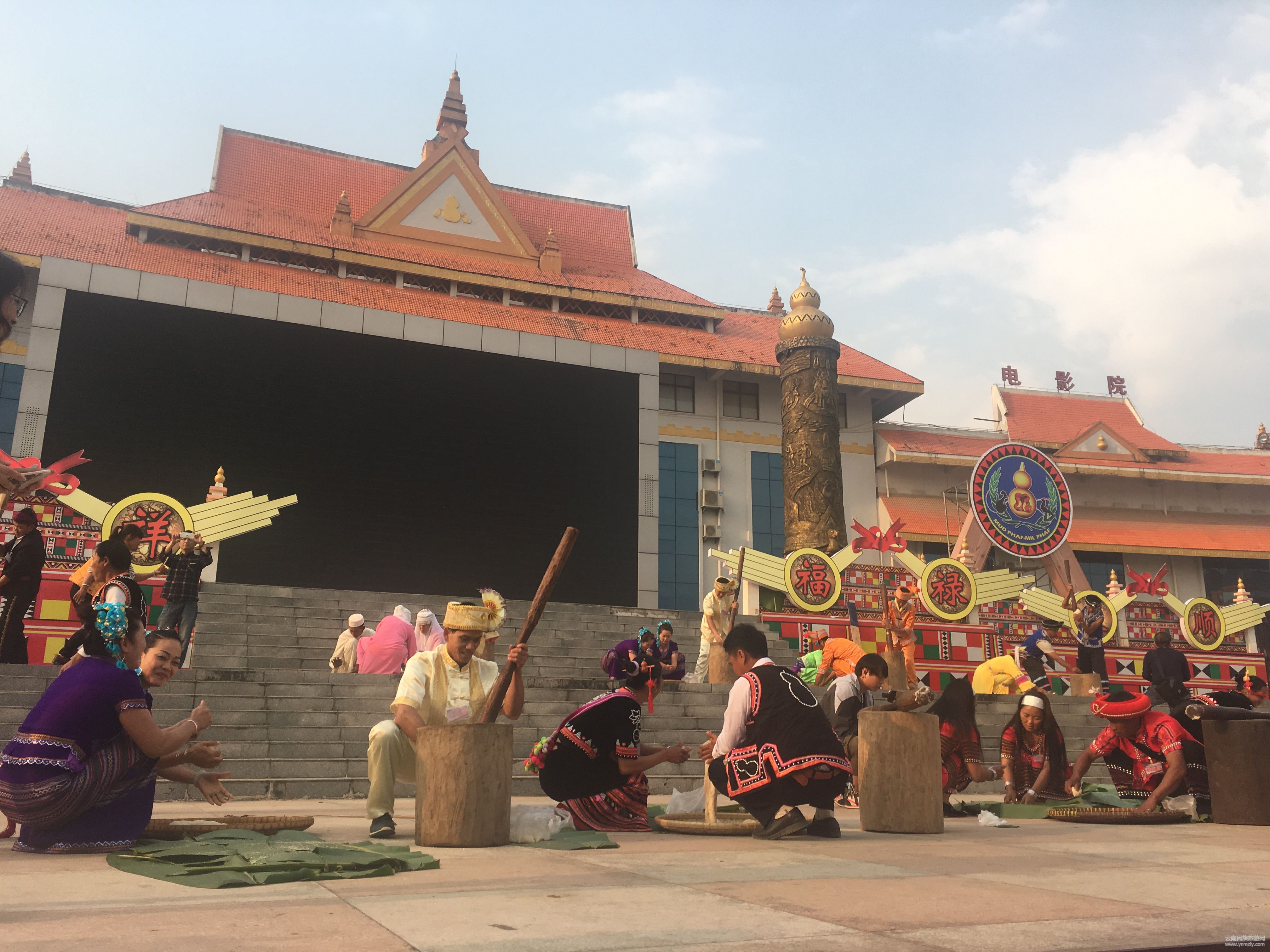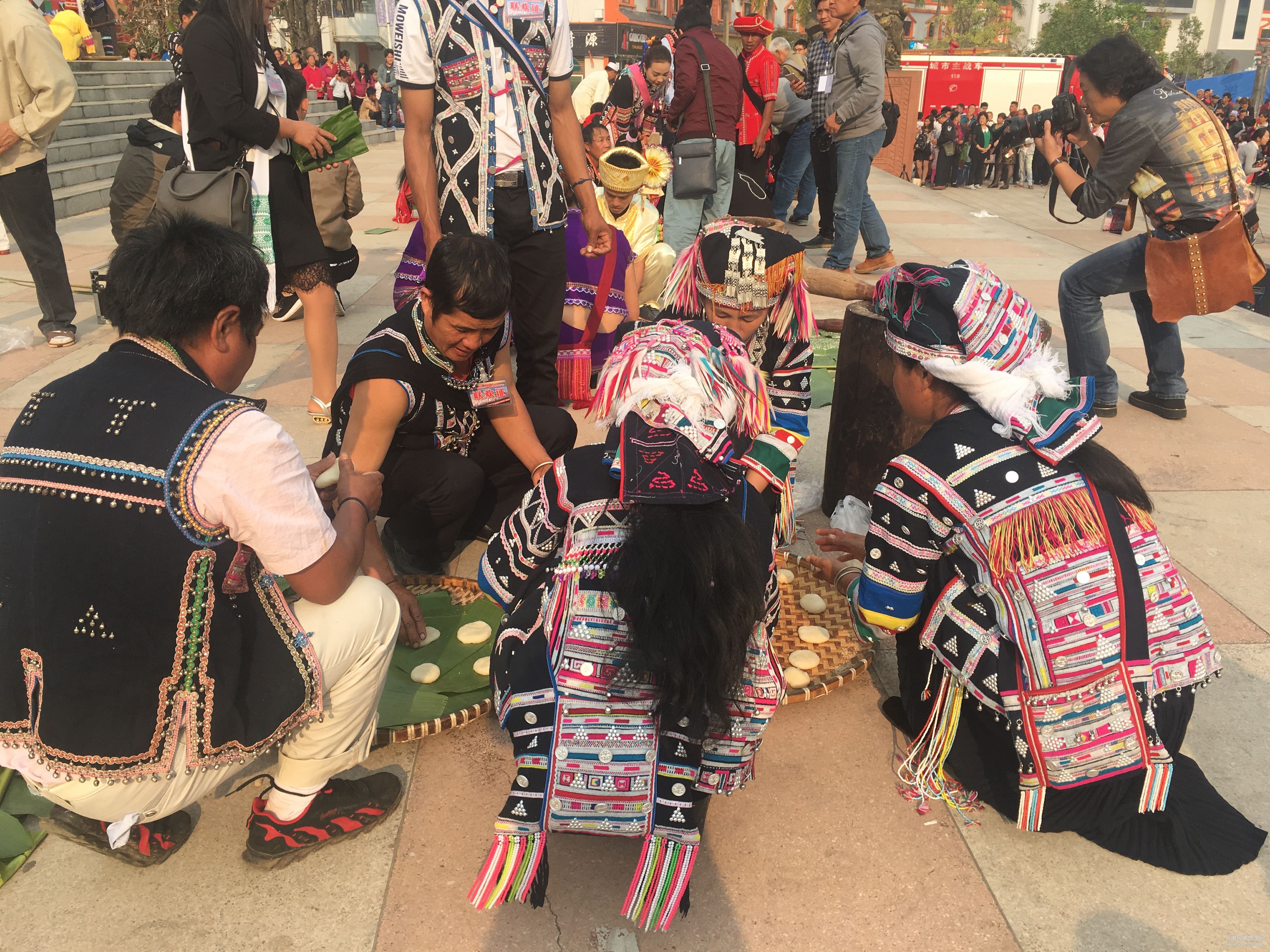 4月8日上午,瀾滄拉祜族自治縣葫蘆節(jié)開幕,現(xiàn)場組織8個世居民族8個隊(duì)16個小組48人著本民族服裝,在統(tǒng)一的時(shí)間內(nèi)展示舂糯米粑粑的整個過程,要求每隊(duì)1男2女、工具1套(包括碓窩、棒頭和簸箕)。同時(shí)觀眾和游客與表演群眾互動,現(xiàn)場教學(xué)過程中體驗(yàn)舂粑粑的樂趣和感受。比賽結(jié)束后,糯米粑粑都分給了現(xiàn)場觀眾品嘗。