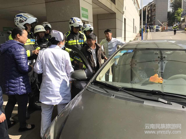 見到民警,其中一司機(jī)焦急的說明原因,是因?yàn)槔先嘶疾。伤颇X溢血,家人匆忙從普洱開車送到昆明來醫(yī)治,只因一時(shí)辯不清方向,所以才停下車。在車內(nèi),民警看到一名緊閉雙眼的老人躺在后座上。緊急十分!民警迅速啟動(dòng)警用摩托車,報(bào)閃警燈,告知司機(jī)跟隨警車趕往醫(yī)院。