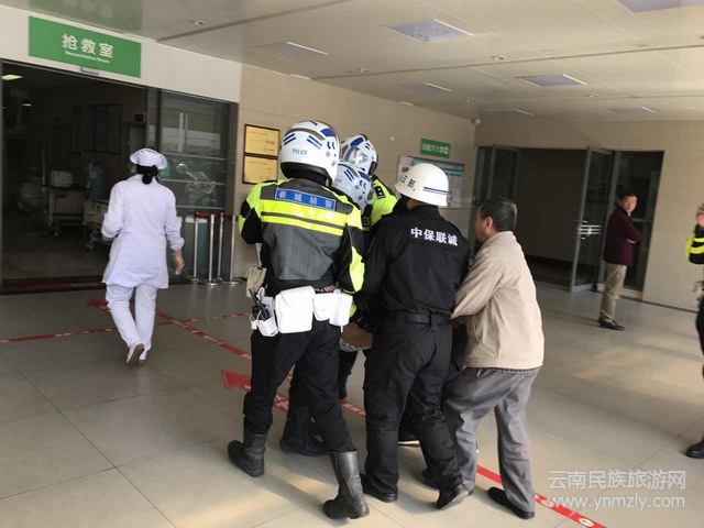9時(shí)45分許,相隔五分鐘,在騎警的引導(dǎo)下,兩輛小轎車被安全護(hù)送到昆醫(yī)附二院急診室門口,隨后民警配合醫(yī)護(hù)人員和家屬將病患老人送進(jìn)了搶救室。