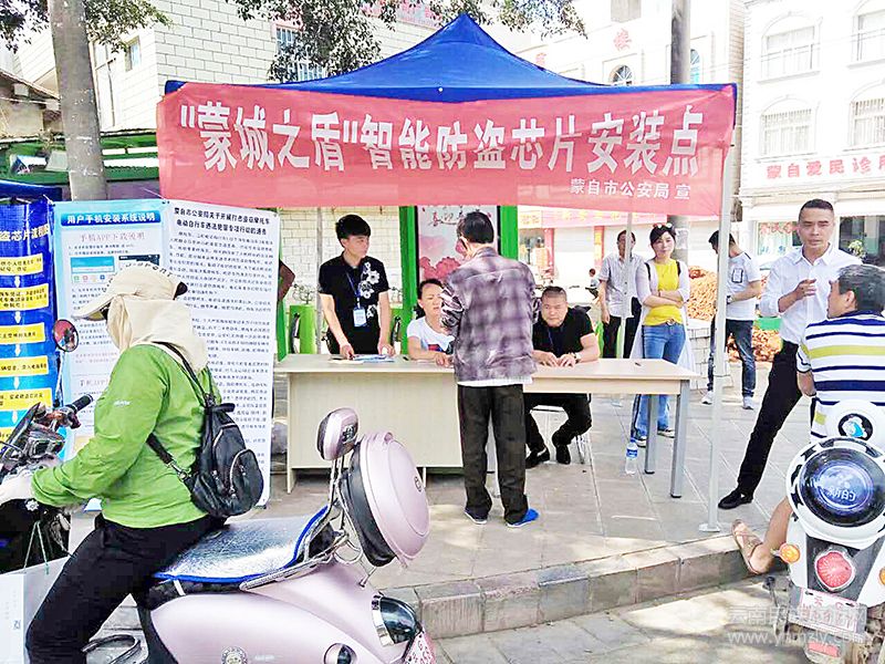 本報訊(通訊員 沈建嬌)為切實解決社會各界和廣大群眾反映強烈的電動車、二輪摩托車(簡稱“兩車”)被盜的社會熱點問題,精確打擊盜竊電動車、摩托車犯罪行為,確保人民群眾財產(chǎn)安全,蒙自市公安局多措并舉,聯(lián)合多方建設蒙自市物聯(lián)網(wǎng)“蒙城之盾”智能防盜系統(tǒng)管理平臺,專項治理電動車、摩托車“盜搶”違法犯罪行為。5月9日,蒙自電動車智能防盜系統(tǒng)正式開始安裝。安裝現(xiàn)場蒙自市公安局治安大隊副大隊長高弟及民警為市民解答疑問。