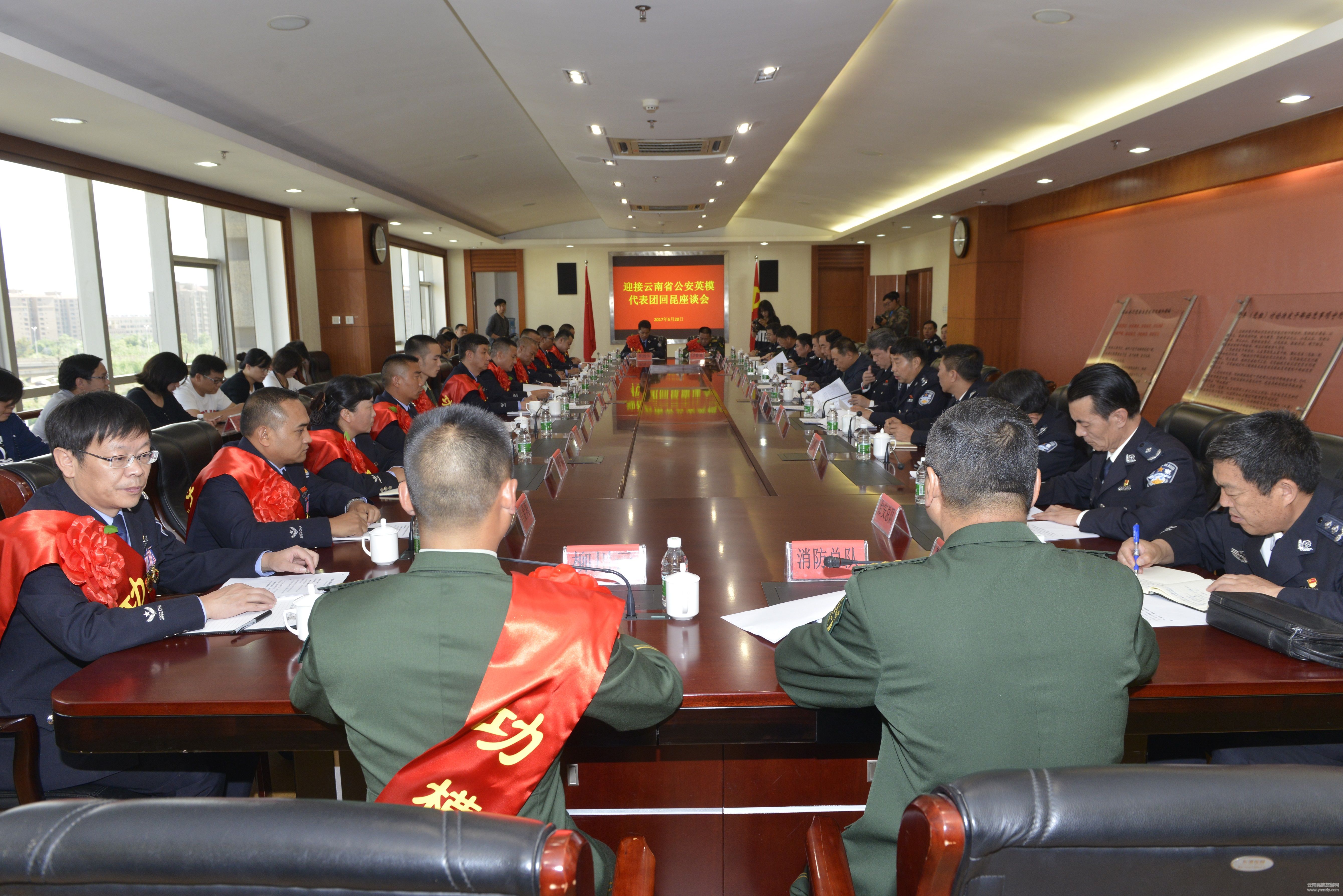 5月20日,赴京受表彰代表載譽(yù)回昆并參加在省公安廳召開的座談會,省委常委、副省長、省委政法委書記張?zhí)」矎d黨委書記、廳長任軍號,省公安廳黨委副書記、常務(wù)副廳長董家祿,省公安廳黨委委員、省紀(jì)委駐公安廳紀(jì)檢組組長岑化虎等領(lǐng)導(dǎo)出席會議,并就學(xué)習(xí)貫徹習(xí)近平總書記接見時的重要講話精神及本次表彰大會精神,大力弘揚英雄模范立功集體的先進(jìn)事跡與他們進(jìn)行座談。