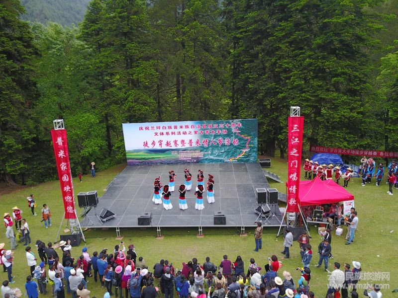 據(jù)介紹,相傳在元朝初年,為打破各民族間禁止通婚的風(fēng)俗,當(dāng)?shù)赝了鞠铝钔菩?ldquo;和親”政策。于是在每年春暖花開、枝繁葉茂的農(nóng)歷五月端五,當(dāng)?shù)鼐蜁M織年輕男女在蘭坪縣羅古箐廣闊的草甸中開展歌舞聯(lián)姻活動,并由此傳承至今。自2003年起,蘭坪縣委、縣政府把“情人節(jié)”更名為“東方情人節(jié)”,2011年更名為“普米情人節(jié)”,成為享譽全國的民族節(jié)慶活動。