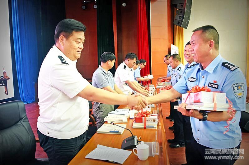 楚雄州公安局黨委班子成員、州文聯(lián)主席李茂尊、民警代表、駐楚新聞媒體記者、作品創(chuàng)作人員共180人參加發(fā)布會(huì),楚雄市公安局5個(gè)派出所、3個(gè)大隊(duì)代表基層所隊(duì)領(lǐng)取了公安文化作品。