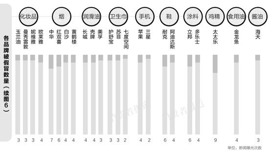 功能飲料“紅牛”也多次被爆出造假,其中僅廣東佛山市就被查獲3次。汰漬、立白、雕牌洗衣粉在多省均有被造假。LV成皮具被仿冒的寵兒,造假地主要集中在廣東。太太樂(lè)雞精被假冒提及次數(shù)達(dá)到9次。手機(jī)品牌則主要為蘋(píng)果、三星。耐克、阿迪達(dá)斯為主要鞋造假牌子。(如圖6)