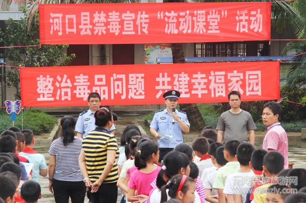 6月22日至23日, 國際禁毒日來臨之際,河口縣公安局聯(lián)合縣禁毒委、團縣委、縣教育局、縣關(guān)工委先后到河口縣城區(qū)小學(xué)、壩灑中學(xué)、南溪民族小學(xué)開展禁毒宣傳教育活動,進一步增強青少年抵制毒品的意識和能力,提高自我保護能力。