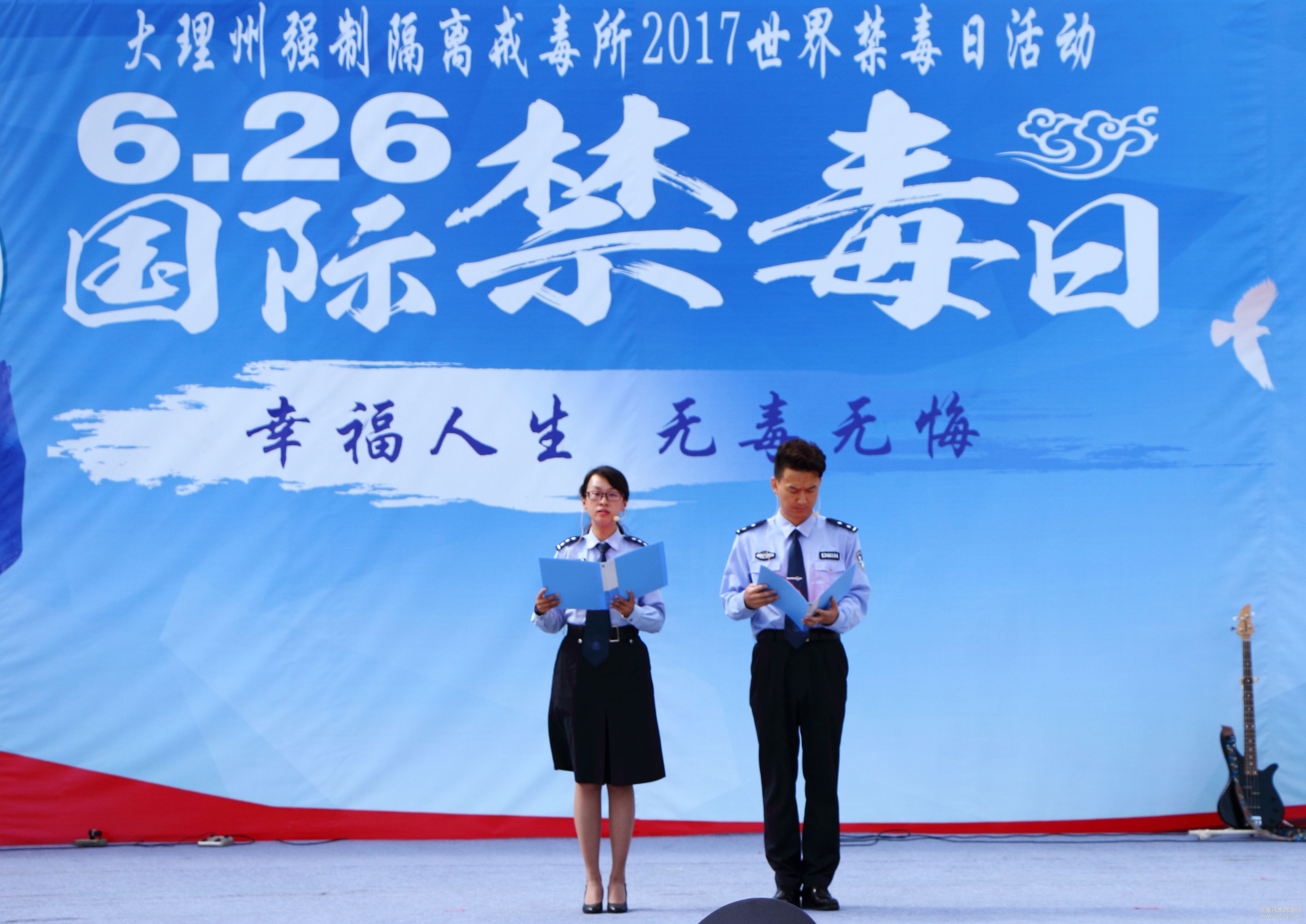 6月26日上午,在第30個(gè)國際禁毒日來臨之際,為進(jìn)一步強(qiáng)化毒品危害的內(nèi)外宣傳,推進(jìn)全民參與禁吸戒毒工作,大理州強(qiáng)制隔離戒毒所舉辦了以“幸福人生 無毒無悔”為主題的文藝匯演活動(dòng);大理州司法局、大理團(tuán)州委、大理州疾控中心等單位領(lǐng)導(dǎo)現(xiàn)場(chǎng)觀看了演出;大理州強(qiáng)制隔離戒毒所黨委書記、所長甘帆致辭。