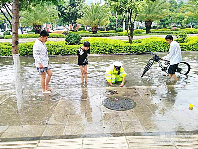 7月9日,蒙自突降大雨,導(dǎo)致蒙自城區(qū)多地道路積水,交通擁堵。有這樣一群小伙伴卻冒雨出動,堅守在自己的崗位上,他們挽起褲腿去幫助受困市民、疏通交通秩序。