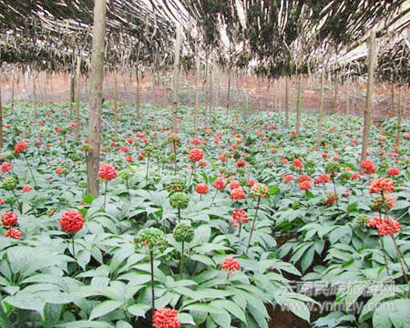 每年8月到9月份的時(shí)候,文山州的大小山坡上,就會(huì)不約而同地出現(xiàn)一道壯麗的景觀——“三年滿園紅”。經(jīng)過三年的細(xì)心耕耘、照顧、培育,當(dāng)紅彤彤的三七花開,表明三七果實(shí)已經(jīng)成熟,可以采摘賣錢了。