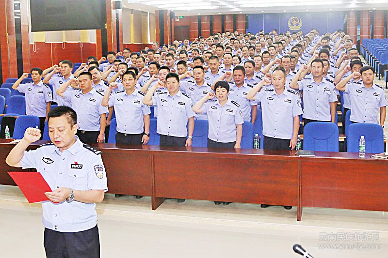 為深入學(xué)習(xí)貫徹習(xí)近平總書記在今年5月19日接見全國公安系統(tǒng)英雄模范立功集體表彰大會代表時的重要講話精神,學(xué)習(xí)貫徹公安部6月27日印發(fā)修訂后的《人民警察入警誓詞》,切實把習(xí)近平總書記提出的對黨忠誠、服務(wù)人民、執(zhí)法公正、紀(jì)律嚴(yán)明“四句話、十六字”總要求在全警高高樹立起來、堅決落實下去,真正做到內(nèi)化于心、外踐于行。日前,廣南縣公安局認(rèn)真組織全體民警開展重溫《人民警察入警誓詞》活動。