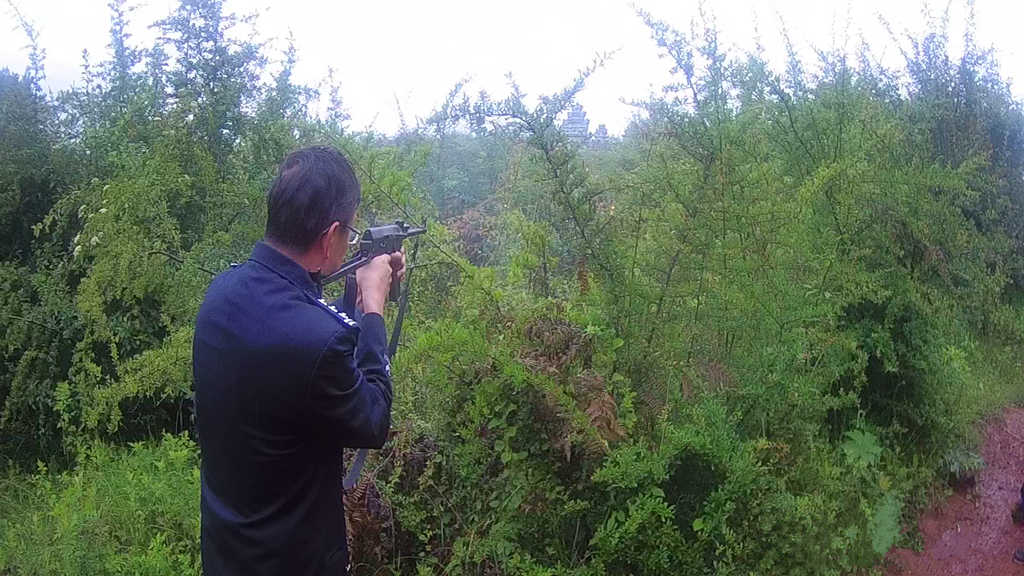 為穩(wěn)妥處置事件,避免其他意外事件的發(fā)生,民警對(duì)周邊群眾進(jìn)行疏散。天下著淅瀝細(xì)雨,樹(shù)高草深,莊稼密集。民警及隊(duì)員們的全身都濕透,腳上全是泥,在樹(shù)林中與牛展開(kāi)逐角。民警找準(zhǔn)時(shí)機(jī),向牛開(kāi)了幾槍,誰(shuí)也沒(méi)想到,出現(xiàn)了驚險(xiǎn)的一幕,受傷的牛竟然向民警奔跑過(guò)來(lái)。