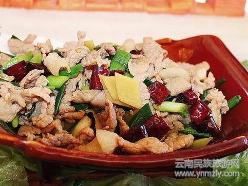 宣威小炒肉那么好吃,那么出名是為什么嗎?其實道理很簡單,我們宣威的土豬和我們宣威人一樣愛吃大洋芋,一天比我們吃得多得多,它們覺得它們的生活待遇和人類一樣一樣的,所以一天老高興啦,在舒適愉快的環(huán)境里生長出來的豬肉自然稚嫩,香氣撲鼻,吃起來有快樂感。