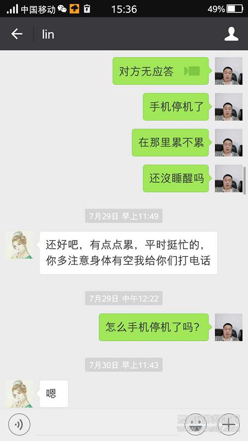 林華蓉生身陷傳銷(xiāo)后與父親的微信聊天記錄7月19日上午,林孝俊再次給女兒發(fā)微信視頻聊天,仍無(wú)應(yīng)答。林孝俊追問(wèn),“手機(jī)停機(jī)了?”“在那里累不累?”“還沒(méi)有睡醒嗎?”
