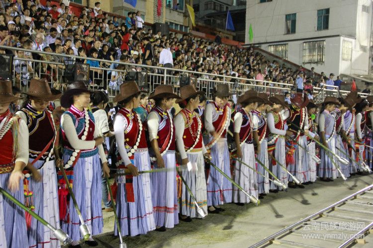 演出在傈僳族盛大的祭奠中拉開序幕,古老的祭奠儀式上,傈僳族男女青年載歌載舞,隆重而又熱烈。