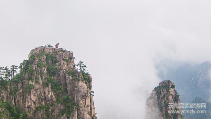 猴子觀海位于清涼臺和獅子峰之間,這三個地方在一條線,都是看日出的好地方。住在北海賓館及獅林大酒店的朋友可以在早上過來,另外這里也有岔道可以下山到黃山北大門。獅子峰當(dāng)天是封閉的,而剩下的兩處觀景處也沒有達(dá)到它們上佳的觀賞效果,霧氣比較大。