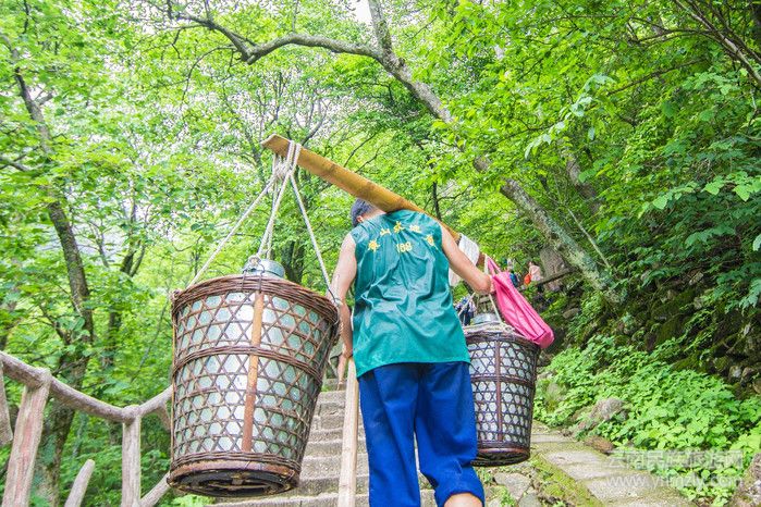 到了云谷寺可以選擇纜車和步行登山,纜車單程80元。作為一個熱愛運(yùn)動的年輕人,而且又是典型的處女座,感覺坐了纜車就沒有了征服感,并不夠完美,所以必須是步行上山。纜車到達(dá)的站點(diǎn)設(shè)在白鵝嶺,步行到此約3小時,一路上的風(fēng)景較為一般,少許的幾個亮點(diǎn)也并不夠驚艷。相比于景色,路上的挑山工更能吸引我按下快門。這里要小心千萬不要好奇或無意的觸碰到挑山工的貨物,因為小小的接觸會改變貨物的重心,對他們和你來說都相當(dāng)危險。