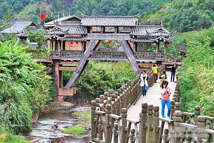 信步間,一座木石結(jié)構(gòu)的古橋橫跨于寨南河面,這就是茶馬古道上久負(fù)盛名的風(fēng)雨橋。