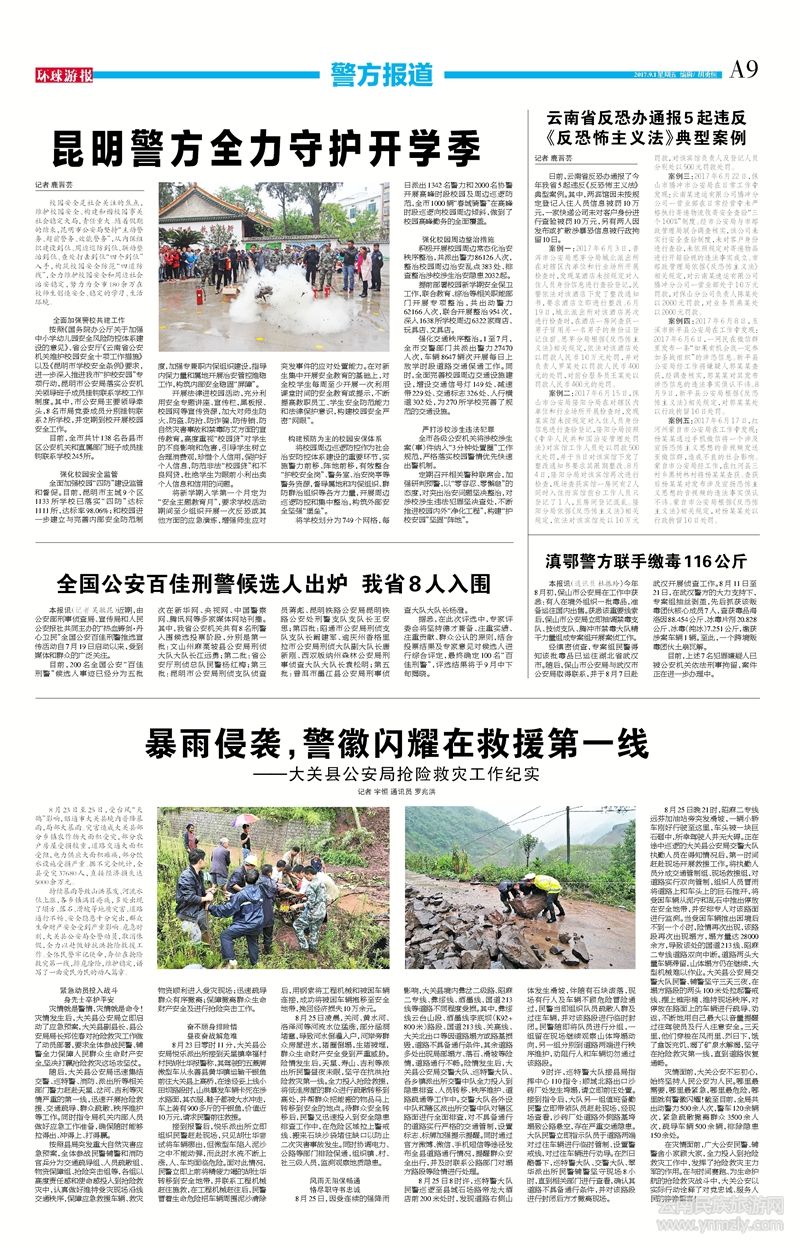持續(xù)暴雨導致山洪暴發(fā)、河流水位上漲,各鄉(xiāng)鎮(zhèn)滿目瘡痍,多處出現(xiàn)了塌方、落石、滑坡等地質災害、道路通行不暢、安全隱患十分突出,群眾生命財產(chǎn)安全受到嚴重影響。危急時刻,大關縣公安局全警動員,取消休假,全力以赴做好抗洪搶險救援工作。全體民警牢記使命,奔忙在搶險救災第一線,排危除險,維護穩(wěn)定,譜寫了一曲愛民為民的動人篇章。