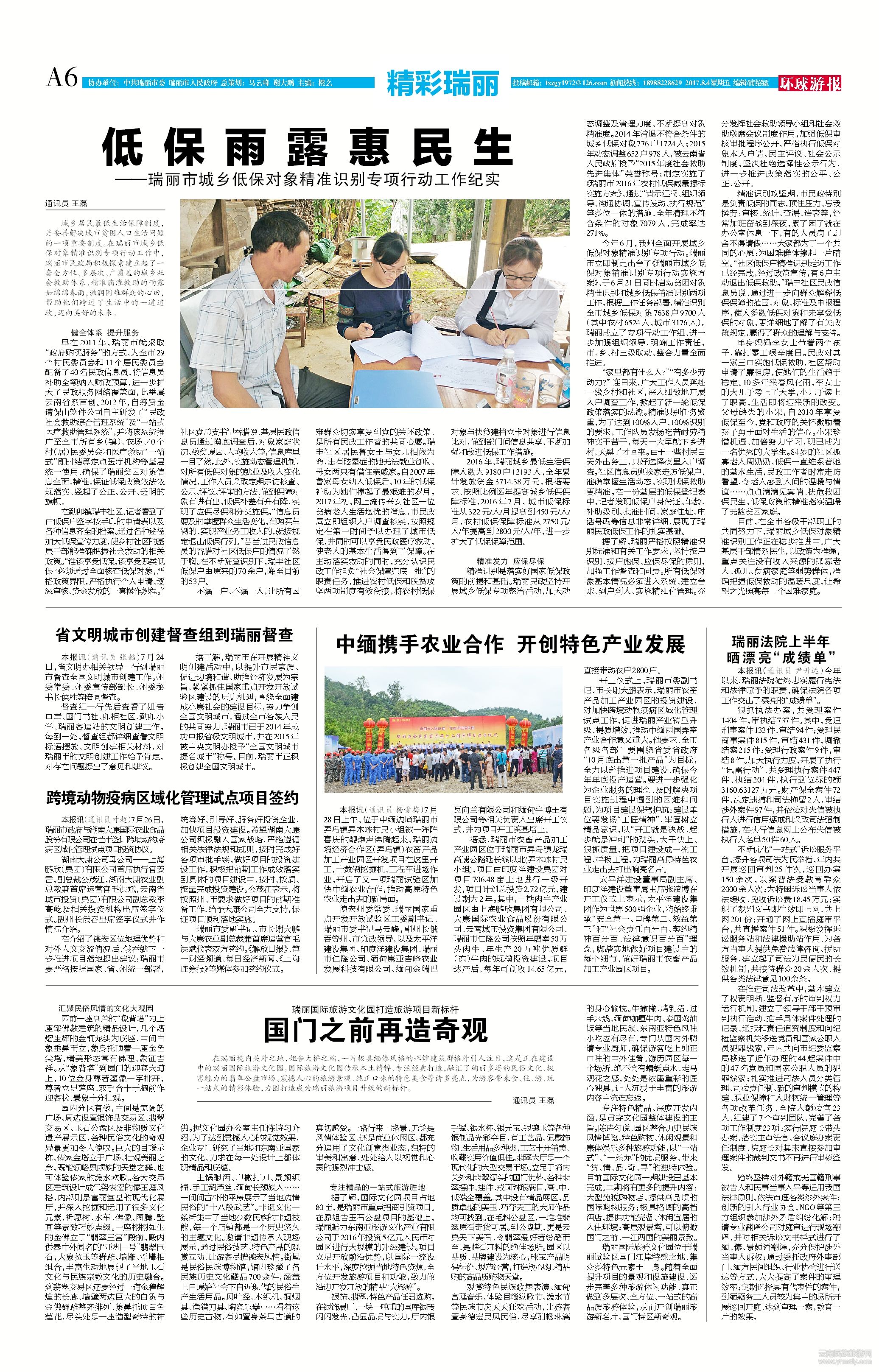 據(jù)了解,瑞麗市在開展精神文明創(chuàng)建活動中,以提升市民素質(zhì)、促進邊境和諧、助推經(jīng)濟發(fā)展為宗旨,緊緊抓住國家重點開發(fā)開放試驗區(qū)建設(shè)的歷史機遇,圍繞全面建成小康社會的建設(shè)目標,努力爭創(chuàng)全國文明城市。通過全市各族人民的共同努力,瑞麗市已于2014年成功申報省級文明城市,并在2015年被中央文明辦授予“全國文明城市提名城市”稱號。目前,瑞麗市正積極創(chuàng)建全國文明城市。通訊員 張懿 (文章來源環(huán)球游報2017年8月4日 第1103期 A6版)
