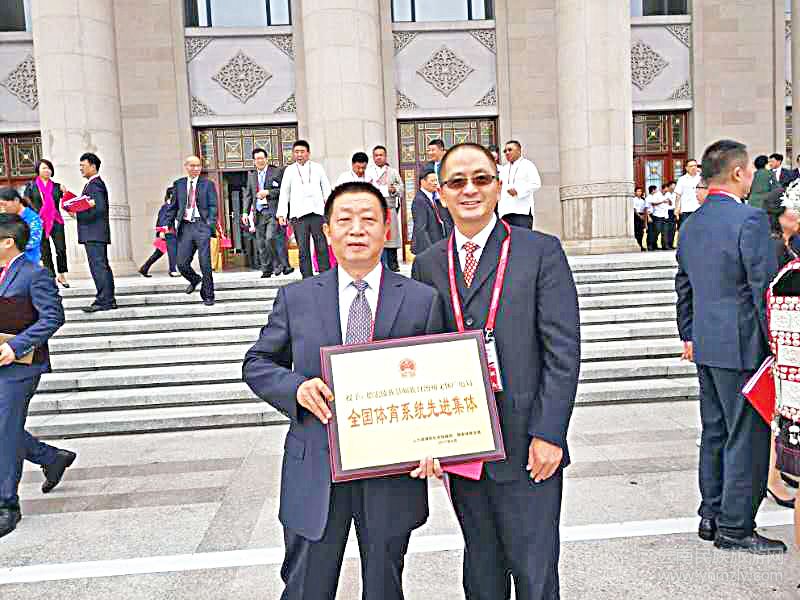28日上午,老天給力,下雨天突然轉(zhuǎn)晴,天津美麗如畫。8時(shí)30分,全體代表經(jīng)過嚴(yán)格安檢,從下榻在不同方向的賓館匯聚到天津禮堂。天津禮堂彩旗飄揚(yáng),熱鬧非凡。9時(shí)40分,1300余名參會(huì)代表在工作人員的引領(lǐng)下整裝待會(huì)。會(huì)場布置的簡潔明了,主席臺(tái)正上方一條顯眼的紅布標(biāo)寫明了會(huì)議主題。安靜有序的會(huì)場上不時(shí)有相熟的人小聲交談,更有人按捺不住激動(dòng),借候會(huì)之閑合影留念。我因與同行的云南代表團(tuán)分開坐,急忙發(fā)信息給同在會(huì)場的德宏老體協(xié)常務(wù)副主席楊旻“想著幫我照現(xiàn)場領(lǐng)獎(jiǎng)的像”,結(jié)果會(huì)后一看,禮堂屏蔽發(fā)不出信息。10時(shí),表彰大會(huì)正式開始。我與代表全國體育系統(tǒng)先進(jìn)集體的同志一道,身著西裝,踏著樂點(diǎn),邁著正步,精神抖擻的走上主席臺(tái)。為我頒牌的是國家體育總局副局長李穎川,他2016年8月來德宏檢查指導(dǎo)過工作。他握著我的手叮囑:“不錯(cuò),好好干!”端著由國家人力資源社會(huì)保障部和國家體育總局頒發(fā)的獎(jiǎng)牌,接受各路記者的照相,內(nèi)心的激動(dòng)流于言表,真的,我由衷的為云南驕傲,為德宏驕傲。