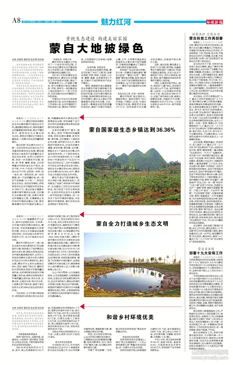 近年來,蒙自市放大森林覆蓋優(yōu)勢,全面實施鄉(xiāng)村石漠化治理、低效林改造、面山綠化、通道綠化和農(nóng)村能源建設(shè)等工程項目,扎實開展自然生態(tài)保護和生態(tài)修復(fù)等工作,努力構(gòu)建優(yōu)美和諧的鄉(xiāng)村生態(tài)環(huán)境。