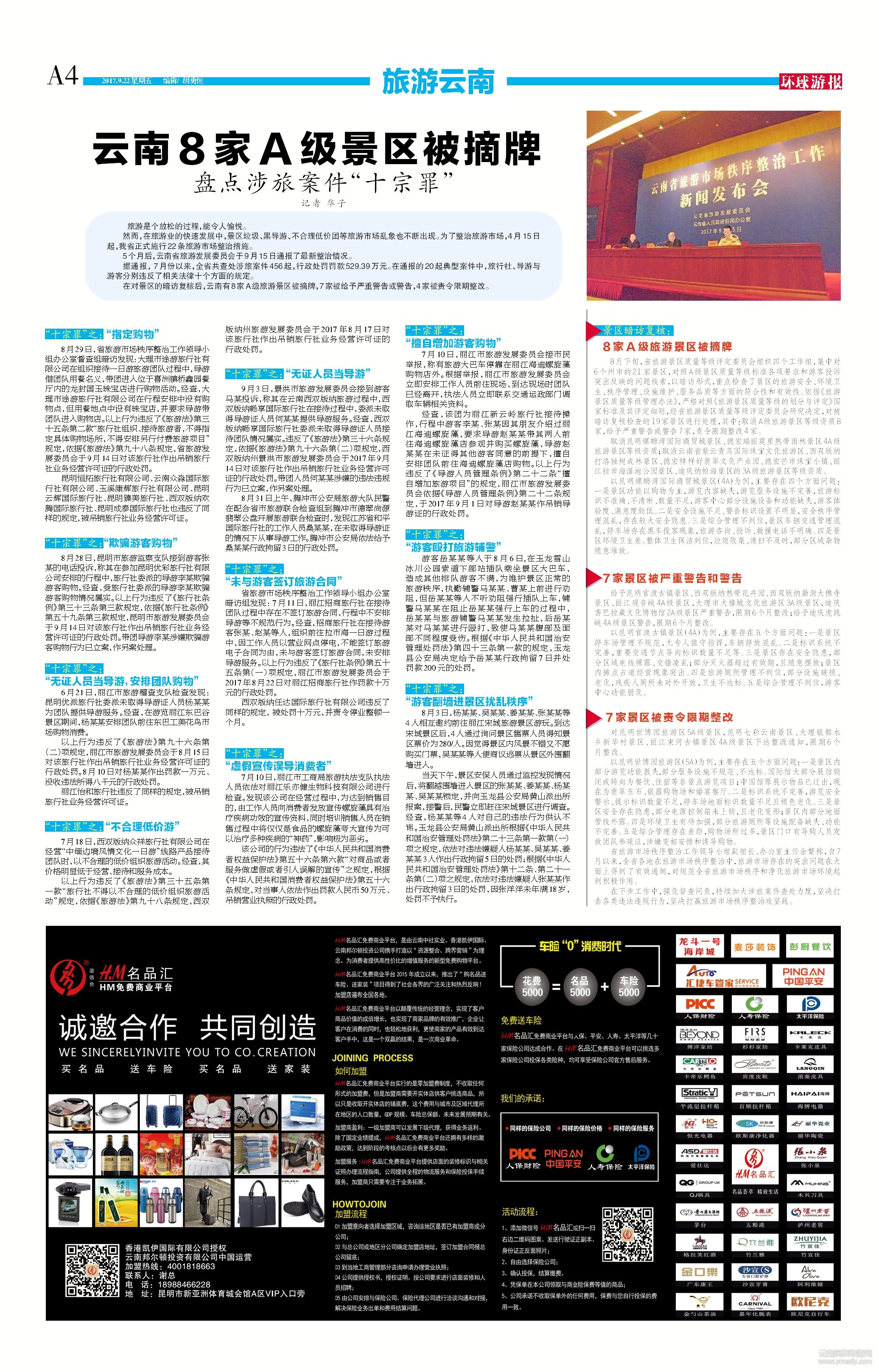 ● 云南8家A級景區(qū)被摘牌 盤點(diǎn)涉旅案件“十宗罪” ( 2017-09-26 )