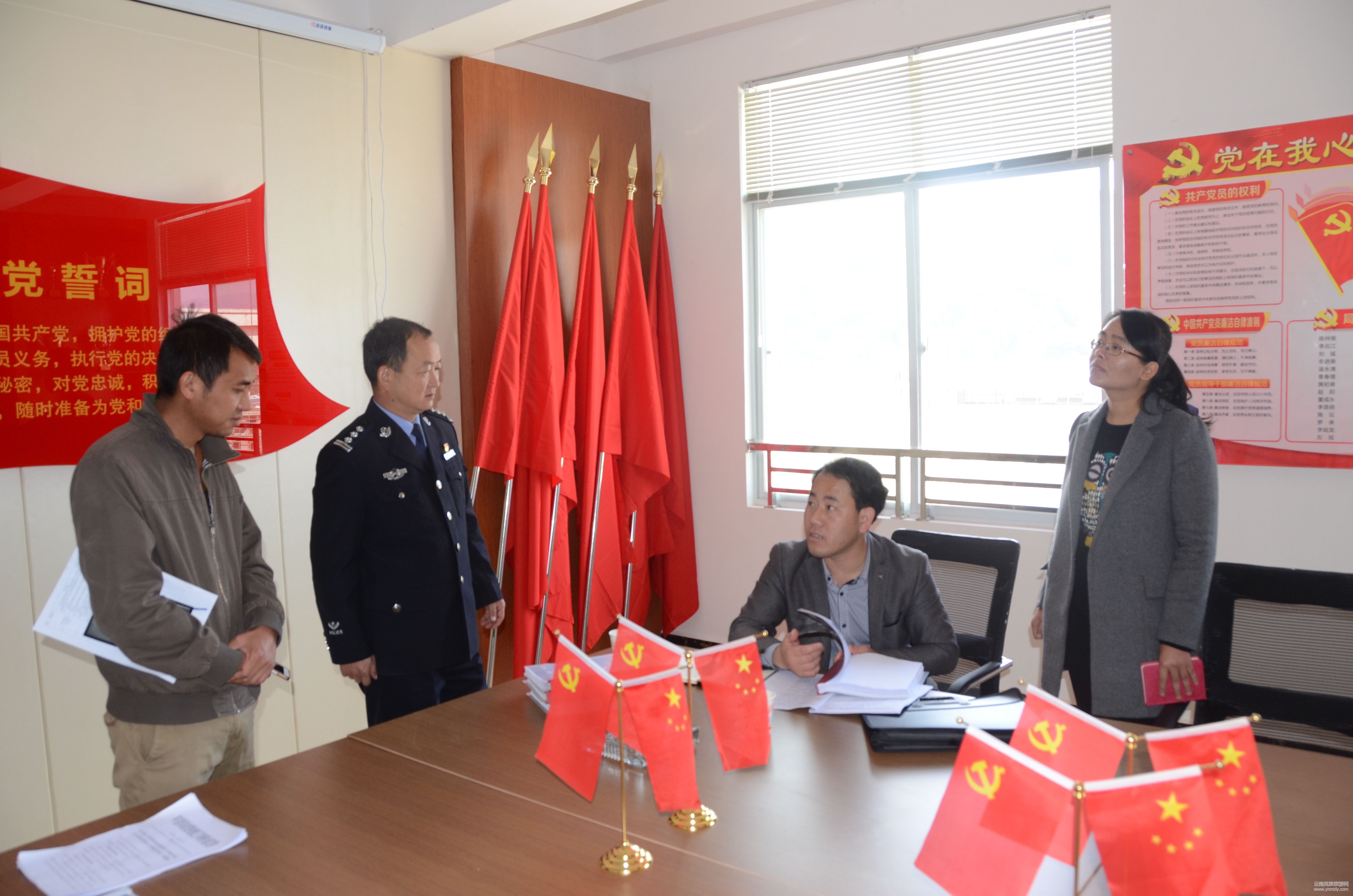 “今年,江城縣公安局派駐扶貧攻堅(jiān)的駐村工作隊(duì),有13個(gè)民警,而且都是黨員干部民警。按照局黨委要求,每個(gè)村民警都掛鉤扶貧村——大綠滿村的13個(gè)村民小組,每個(gè)民警都要將基層村組黨組織抓起來。充分利用基層黨組織的帶頭模范作用,帶動(dòng)民族群眾脫貧致富進(jìn)程……”