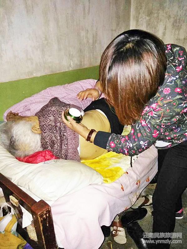 9月26日上午,雪·慈然堂公司位于昆明市永樂路的體驗(yàn)店里,來了一位特殊的客人——一位坐著輪椅的80多歲孤寡老人袁麗珍。她是在雪·慈然堂云紡展廳代理史秋婭的推扶下,坐著輪椅來永樂路體驗(yàn)店做保健理療的。