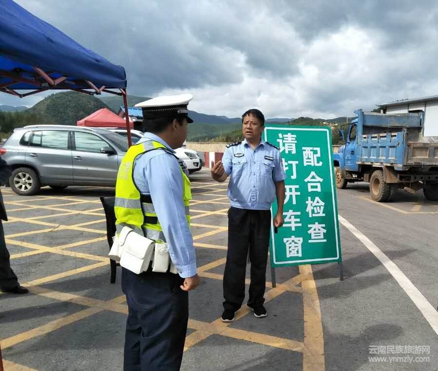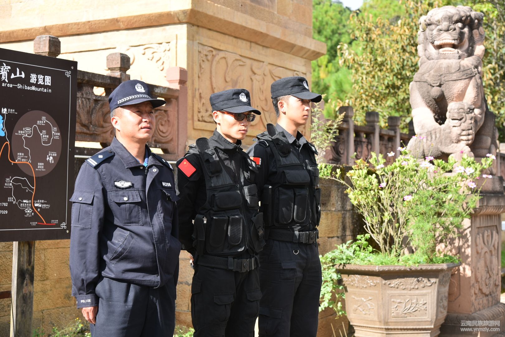 公安局副局長禾汝義(左一)在石寶山景區(qū)站崗執(zhí)勤。