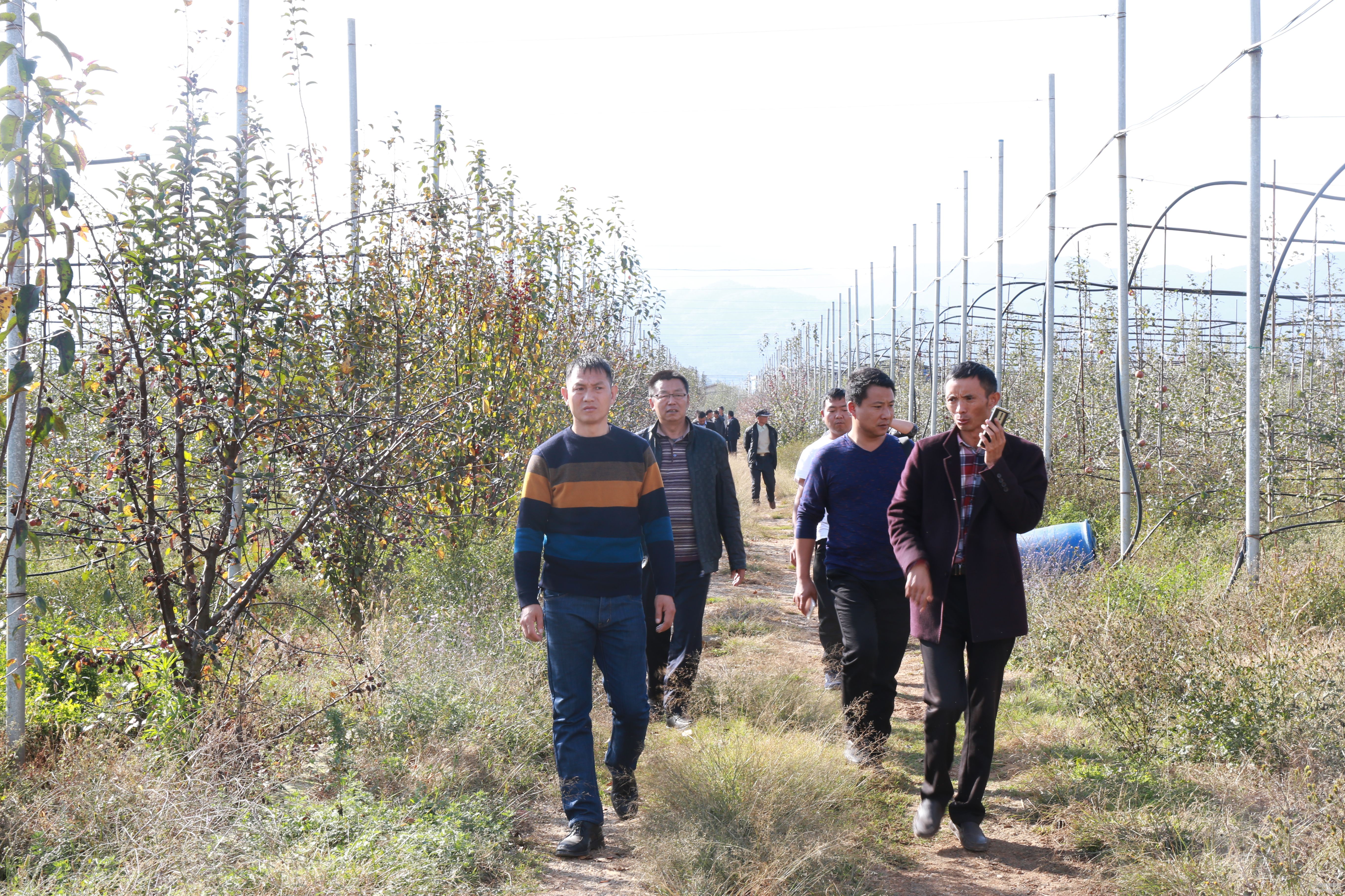 為了進(jìn)一步充分論證伙山村是否適合種植昭通蘋果,增強(qiáng)村民信心。2017年11月6日,大理市公安局扶貧領(lǐng)導(dǎo)組組織伙山村委會(huì)領(lǐng)導(dǎo)、村小組長(zhǎng)、村民代表、貧困戶代表和農(nóng)業(yè)局技術(shù)人員共20人再次遠(yuǎn)赴昭通實(shí)地考察,先后深入昭通市昭陽(yáng)區(qū)灑漁鎮(zhèn)蘋果交易市場(chǎng),了解掌握了蘋果交易價(jià)格、市場(chǎng)行情以及銷售渠道等,同時(shí)還深入果農(nóng)種植的蘋果園和昭通蘋果莊園實(shí)地察看,進(jìn)一步了解昭通綠健果蔬商貿(mào)有限公司的簡(jiǎn)介、管理模式、技術(shù)培訓(xùn)、公司運(yùn)作模式、產(chǎn)品展示等。