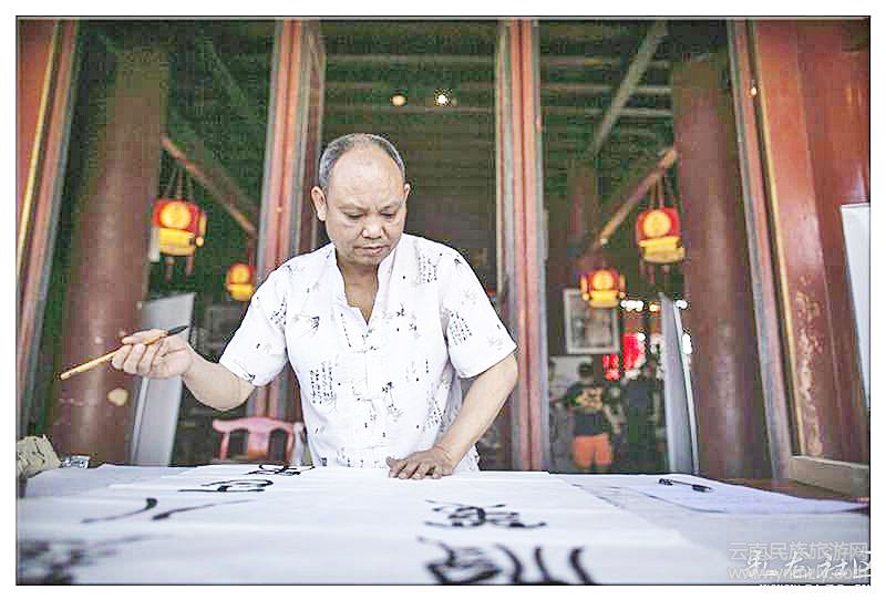 包繼平書法院剛在大觀樓外不遠(yuǎn)處開張,包公31代嫡孫包繼平最拿手的就是包氏書法“五味墨子”,據(jù)說這門技藝在書法界是唯包家所獨(dú)有的。
