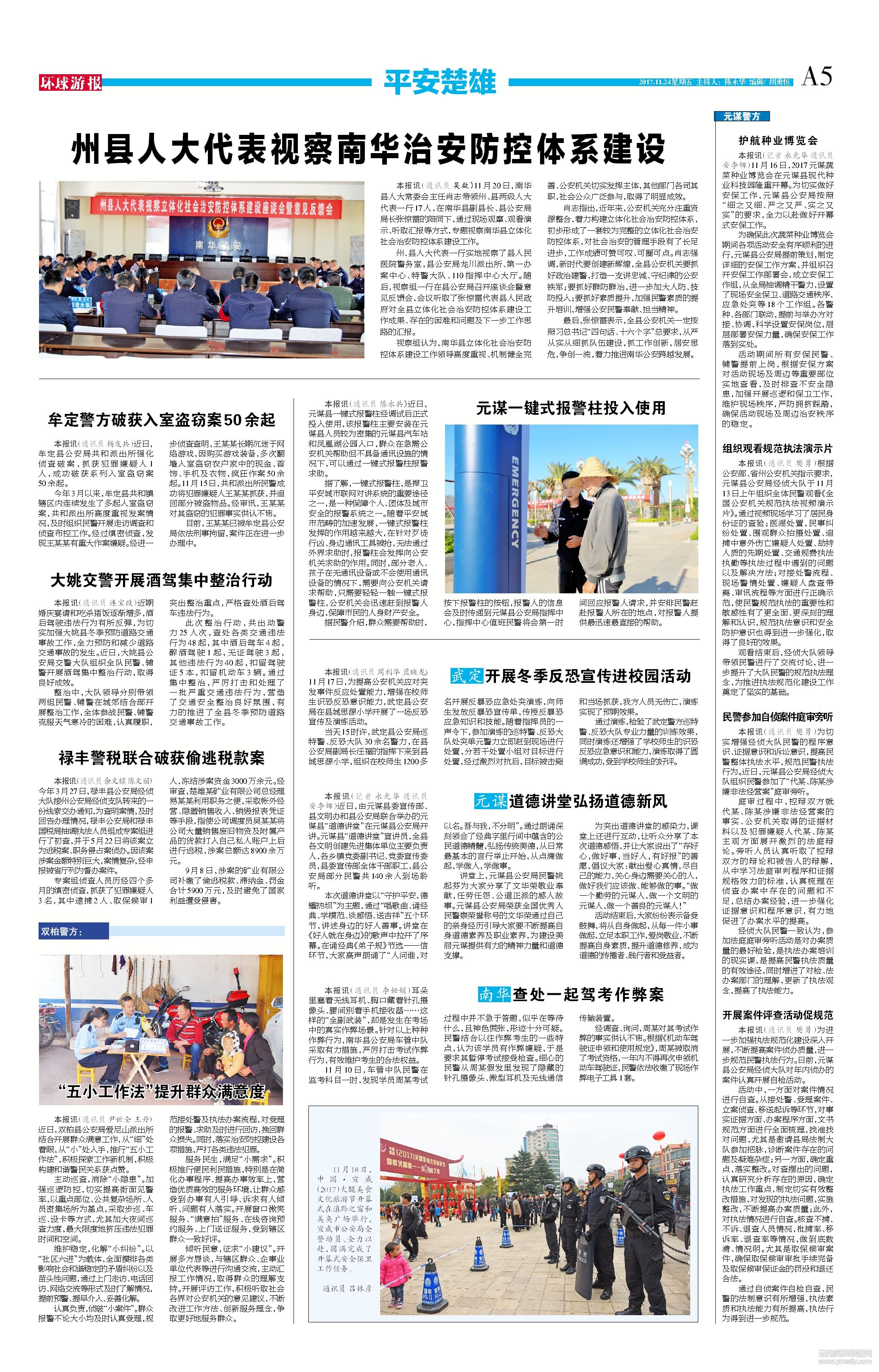 11月20日,南華縣人大常委會主任肖志帶領州、縣兩級人大代表一行17人,在南華縣副縣長、縣公安局局長張驚雷的陪同下,通過現(xiàn)場觀摩、觀看演示、聽取匯報等方式,專題視察南華縣立體化社會治安防控體系建設工作。