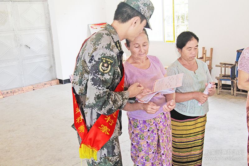 為使村民能夠更形象的了解相關(guān)精神,該連官兵還結(jié)合精心準(zhǔn)備的掛圖為村民講解十九大的相關(guān)常識(shí),將具體的政策法規(guī)制作成折頁發(fā)放到現(xiàn)場村民手中。宣講結(jié)束,村民與宣講隊(duì)成員圍坐一起,促膝而談。聽著國家對(duì)他們的優(yōu)待政策越來越多,傣族大媽萬小煥最為激動(dòng),拉著傣語宣講員段燦輝聊起了這幾年災(zāi)后重建的變化。