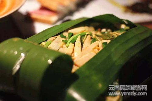 傣味的另一大特點是燒烤,有烤五花肉、烤豬臉、烤雞、香茅草烤魚……還有用芭蕉葉包裹豬腦、雞腳筋、金針菇的包燒系列。葷素搭配、熱性食物佐以涼性食物、色彩艷麗、營養(yǎng)豐富,傣味美食絕對是你擋不住的誘惑。