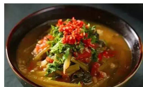 用番茄、酸木瓜片、檸檬等來調(diào)和苦味稍重的青菜,用肉湯熬煮一段時間,有湯有菜,酸辣開胃、特別下飯。