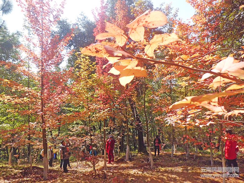 紅楓嶺位于昆明黑龍?zhí)豆珗@的一處山坡上。
