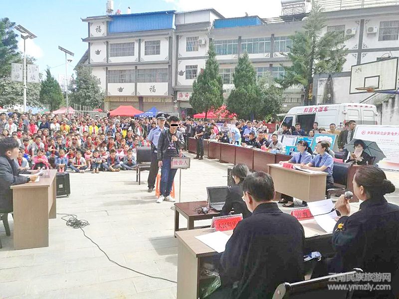 10月26日, 臨翔區(qū)由28家執(zhí)法行政單位聯(lián)合組成的農(nóng)村法制宣傳團到邦東鄉(xiāng)舉辦農(nóng)村法制宣傳活動,法院巡回法庭對楊某醉酒駕駛案件進行了現(xiàn)場開庭審理。臨翔公安分局交警大隊編列其中,結(jié)合職能任務(wù)積極開展農(nóng)村交通安全宣傳。