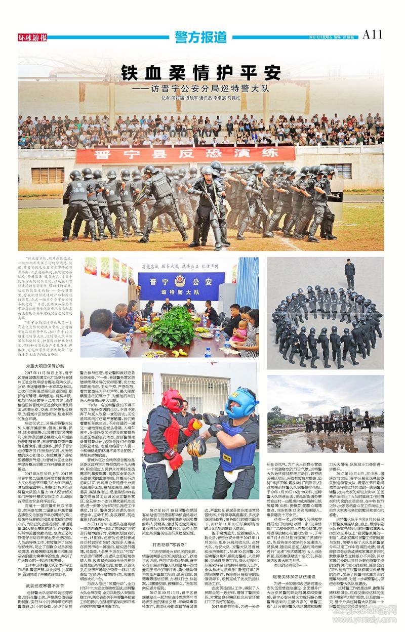 “晉寧分局巡特警大隊是一支有著優(yōu)良傳統(tǒng)的鐵血警隊,前身治安大隊巡特警中隊,2015年年12月組建巡特警大隊,巡特警大隊不斷深化職能轉變,擔負起維護社會穩(wěn)定,預防和處置社會嚴重暴力性、群體性、突發(fā)性事件的重大使命。”分局政委王正亮向記者介紹。