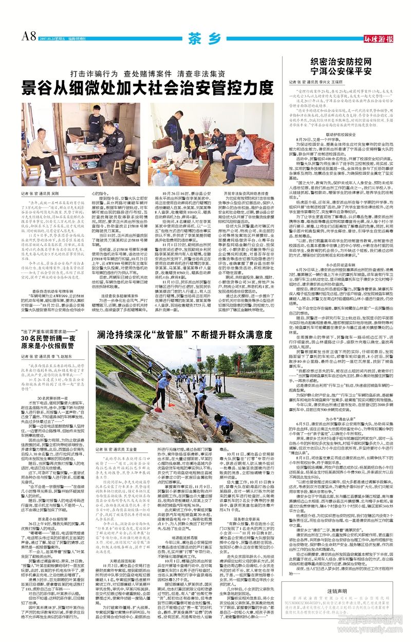 今年以來,景谷縣公安局嚴厲打擊詐騙行為、查處賭博案件、清查集資犯罪……加大了社會管控力度,壓縮了犯罪空間,提升了群眾的安全感和滿意度。