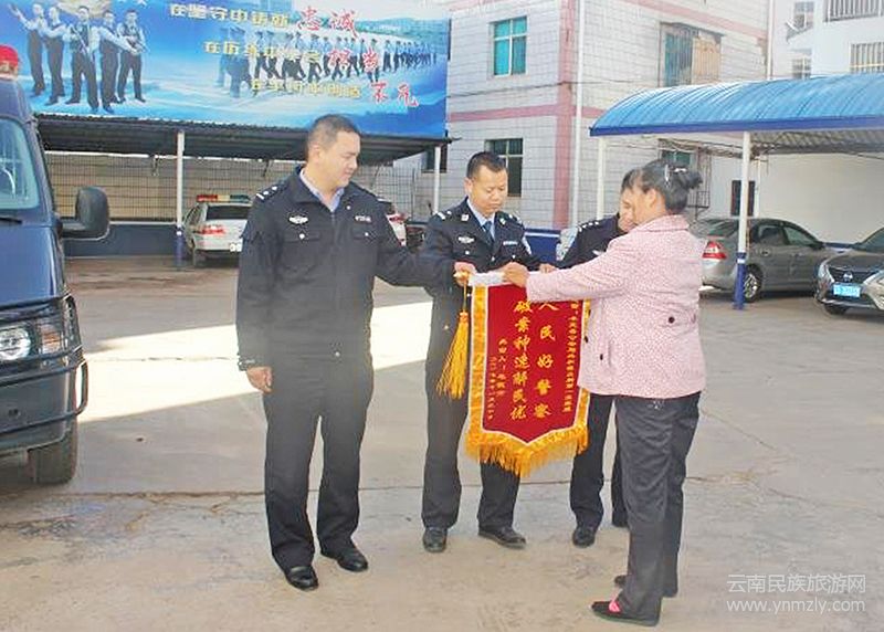 12月2日,毛某某為感謝公安民警,特意制作了一面錦旗送到了牟定縣公安局共和派出所民警手中。