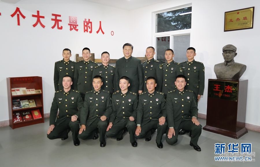 12月13日,中共中央總書記、國家主席、中央軍委主席習(xí)近平到第71集團(tuán)軍視察。這是習(xí)近平同“王杰班”戰(zhàn)士合影。 新華社記者 李剛 攝