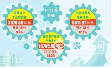 工業(yè)經(jīng)濟(jì)增長平穩(wěn),企業(yè)效益繼續(xù)改善。1至11月,全省規(guī)模以上工業(yè)實(shí)現(xiàn)增加值3378.40億元,同比增長9.5%,增速較1至10月提高0.5個百分點(diǎn),較上年同期高4.1個百分點(diǎn),比全國(6.6%)高2.9個百分點(diǎn)。